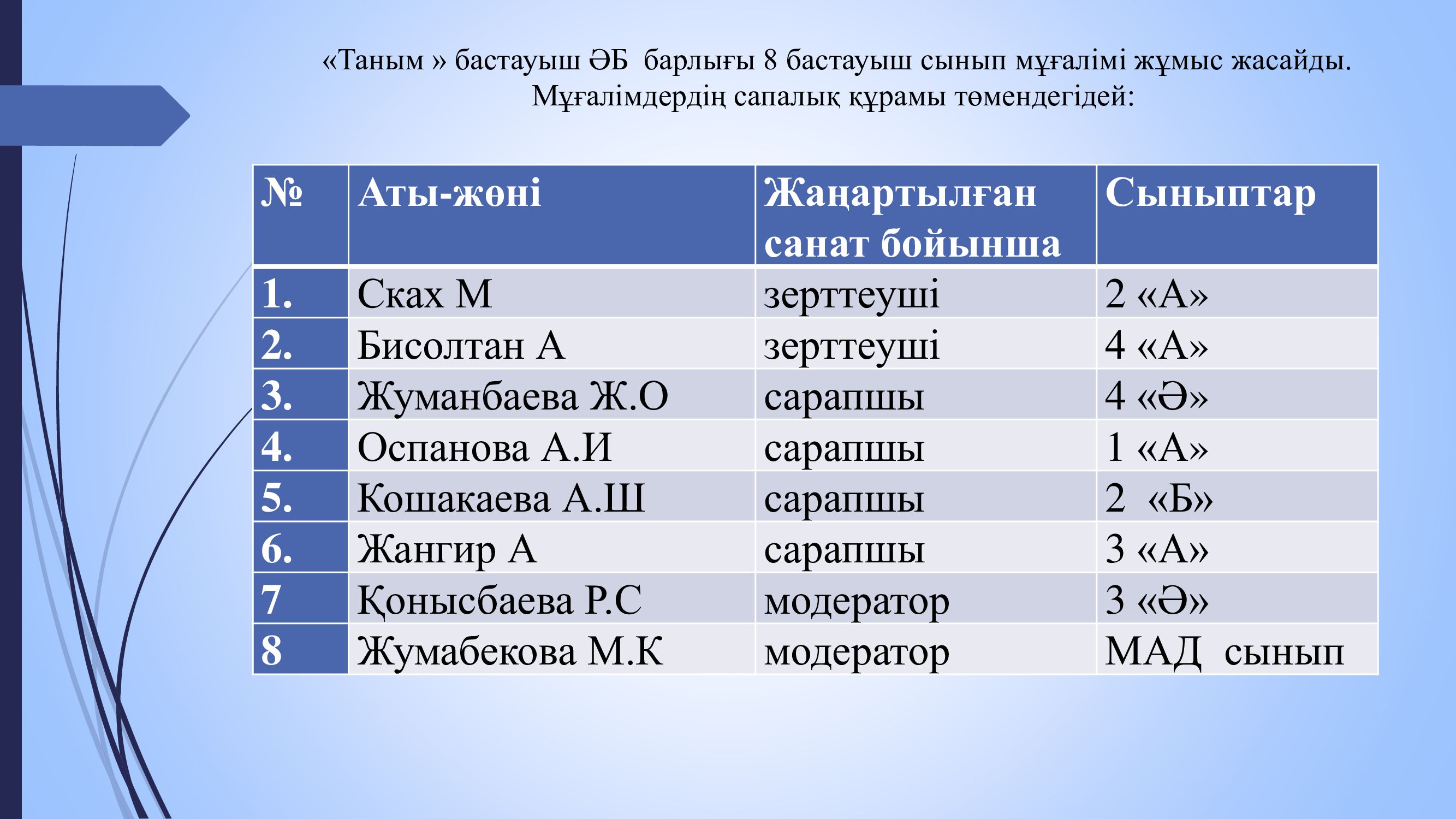 «Байқадам ЖББМ» КММ «Таным » бастауыш әдістеме бірлестігінің3 тоқсан қорытынды есебі
