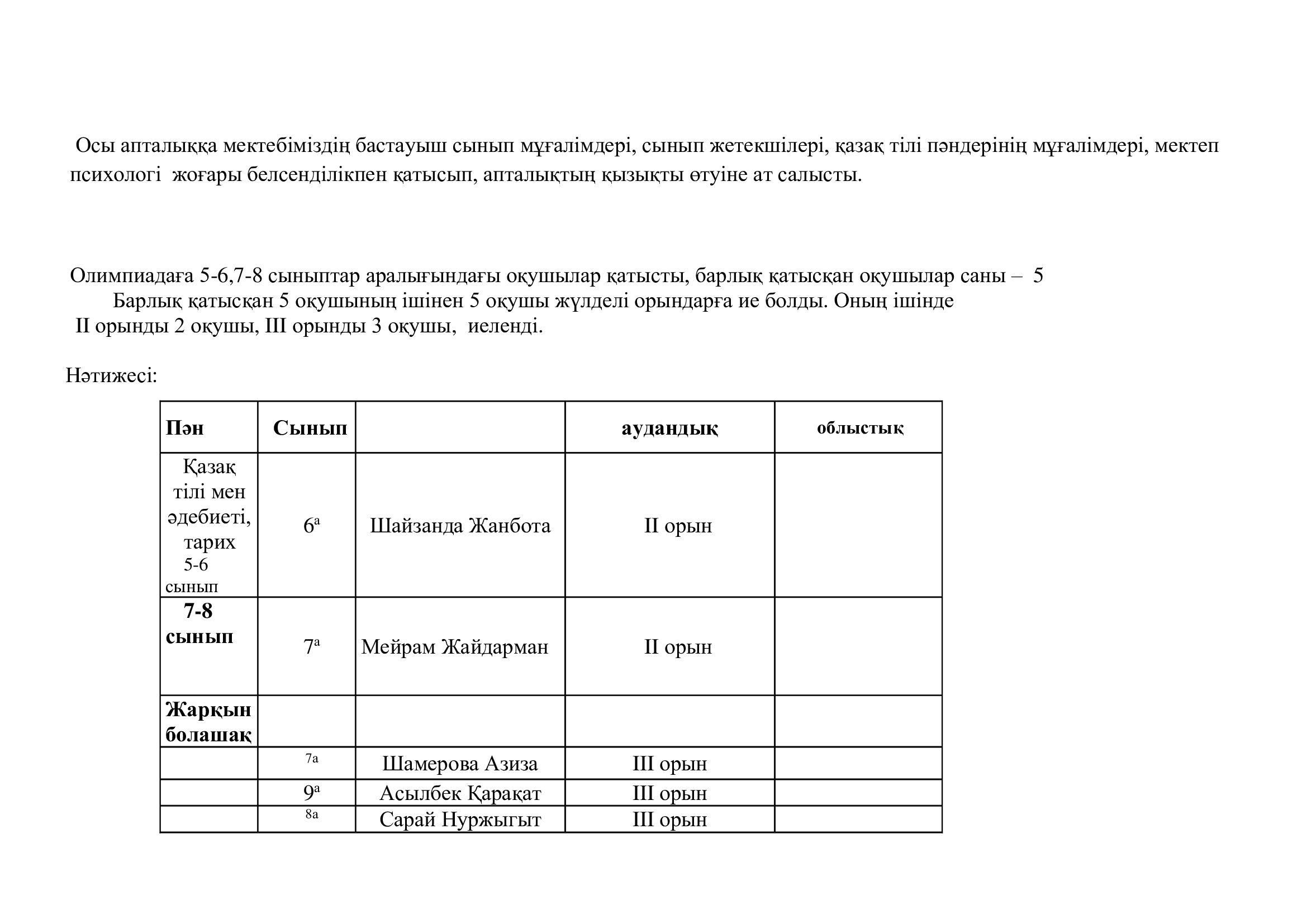 1.Оқушылардың ақпан айындағы ҰБТ бойынша тестілеу нәтижелері