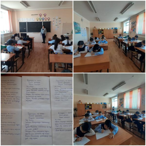 Оқу сауаттылық апталығында 2 'А" сынып "Кітапханашы" тақырыбында бестік диктант