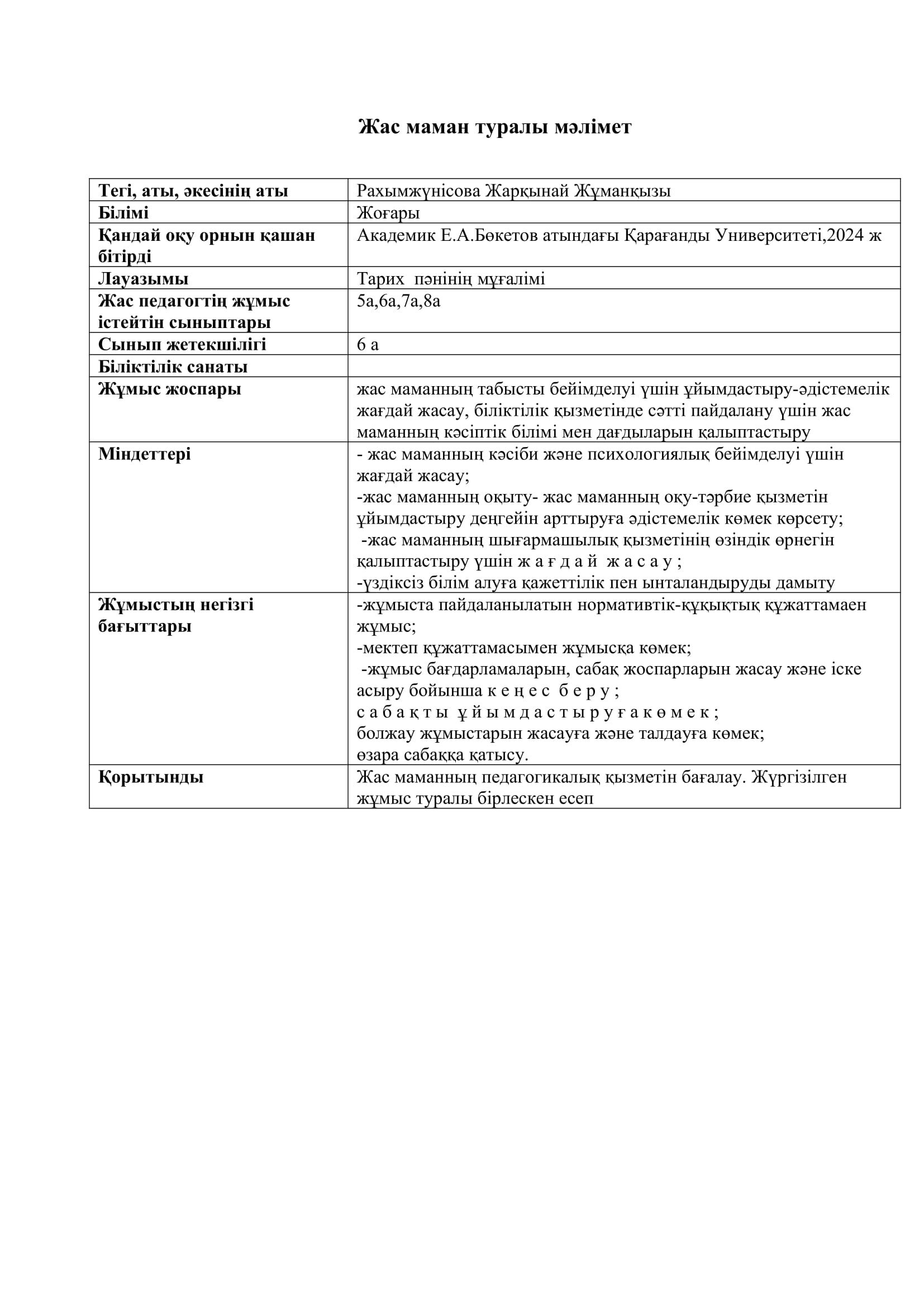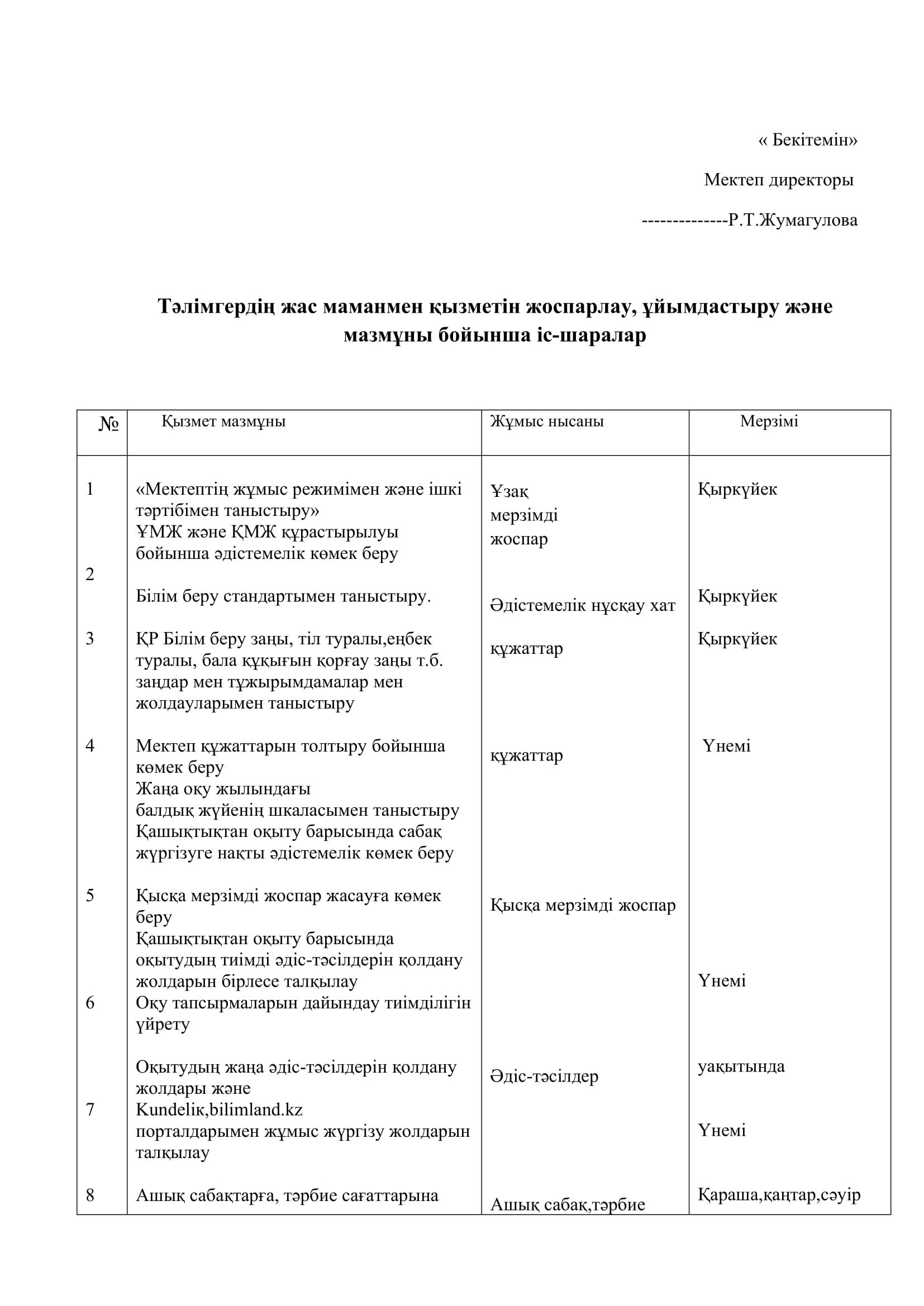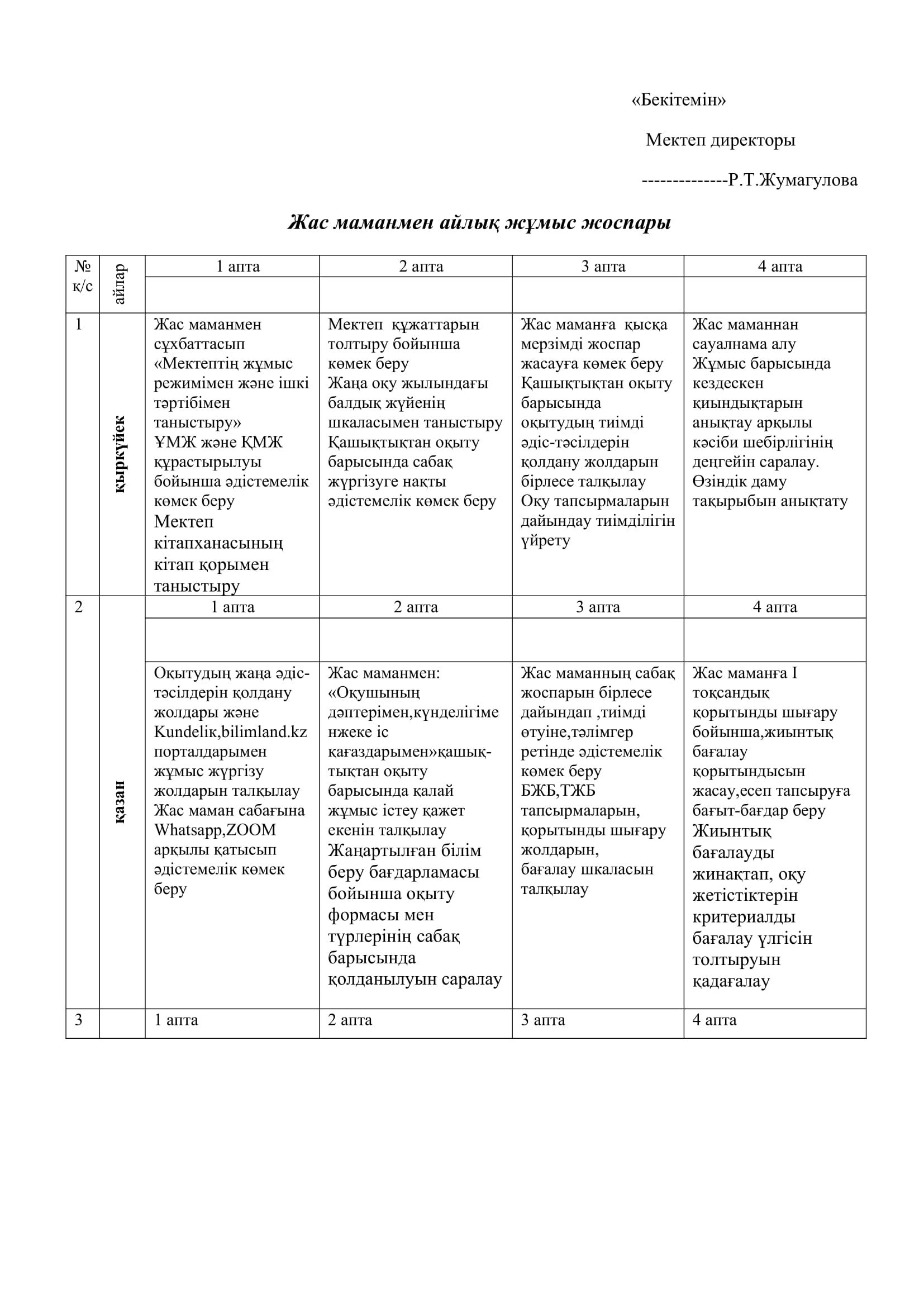 Жас маманмен 2024-2025 оқу жылына жасаған іс-жоспары