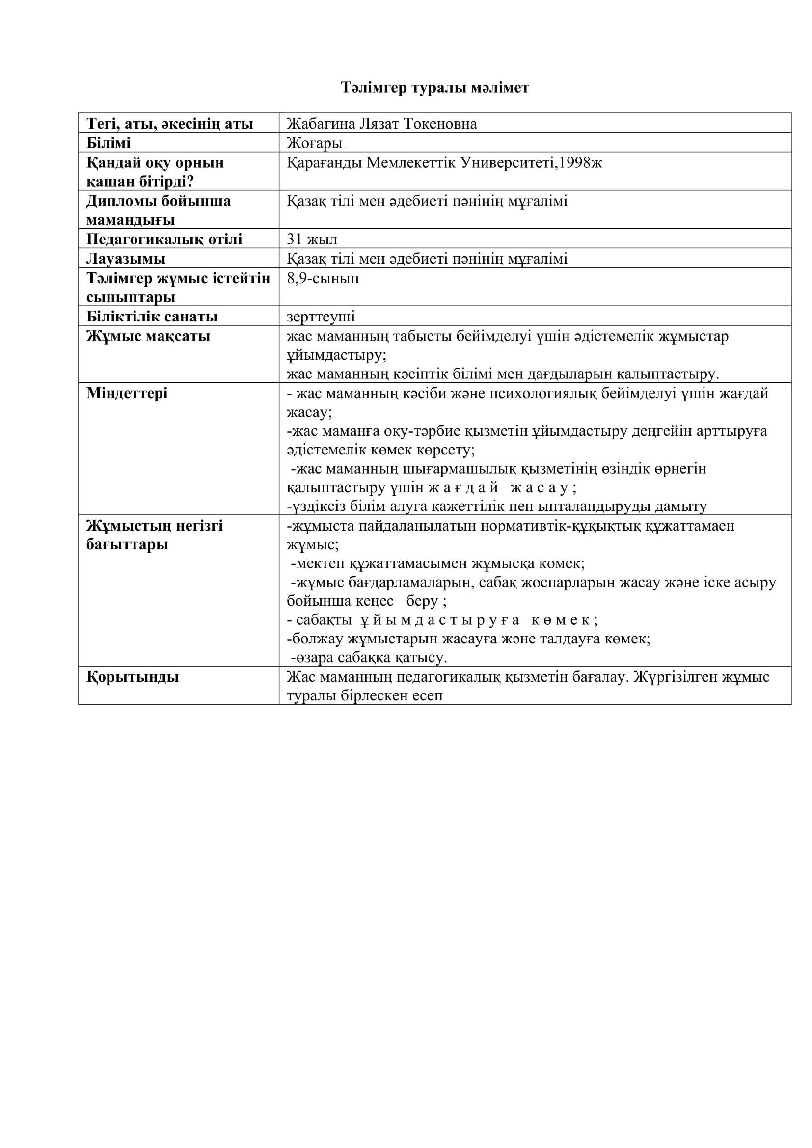 Тәлімгердің жас маманмен қызметін жоспарлау, ұйымдастыру және