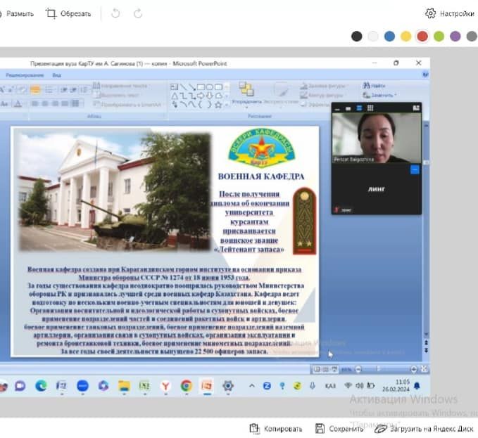 Әбілқас Сағынов атындағы Қарағанды техникалық университетінің Көлік техникасы және логистикалық жүйелер кафедрасының оқытушысы Байғожина Перизат Уалиевнамен 11 сынып оқушыларының қатысуымен онлайн к…