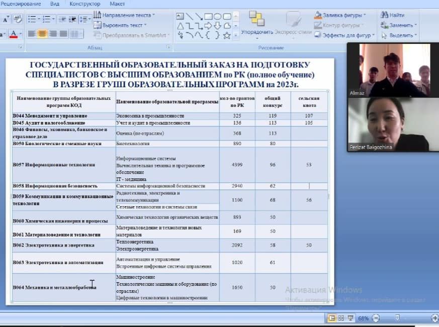 Әбілқас Сағынов атындағы Қарағанды техникалық университетінің Көлік техникасы және логистикалық жүйелер кафедрасының оқытушысы Байғожина Перизат Уалиевнамен 11 сынып оқушыларының қатысуымен онлайн кездесу