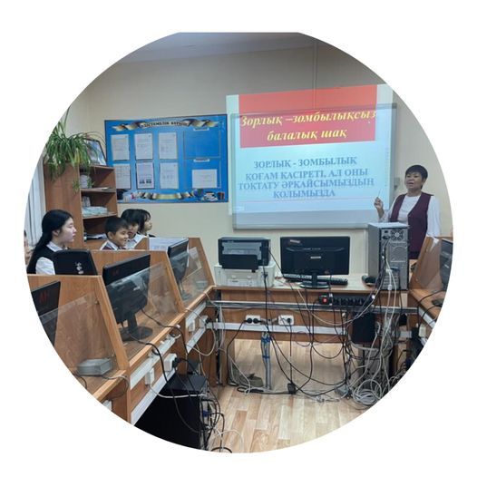 13 қараша күні әлеуметтік педагог АлтыноваА.М, аға тәлімгер Саганаева Г.К және психолог Кунбазарова Ж.Р 5 -8 сынып оқушыларына зорлық-зомбылық туралы бейнероликтер көрсетіп, соңынан оқушылардың қары…