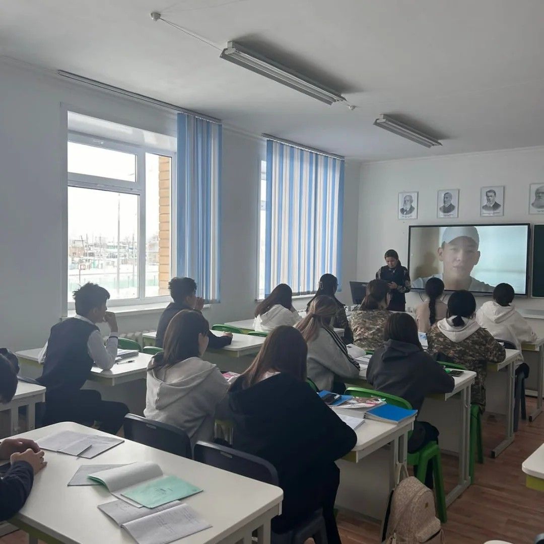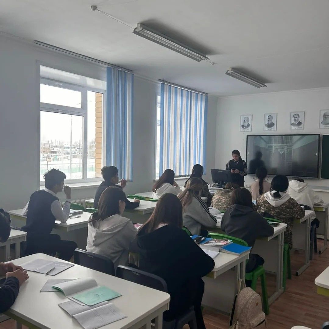 15.11.2024 күні Қазақстан Республикасы Төтенше жағдайлар министрлігінің Мәлік Ғабдуллин атындағы Азаматтық қорғау академиясының маманы ПГ-6 аға лейтенант Бекридал С.А 11-сынып түлектерімен барлық жасалатын мүмкіндіктер туралы түсіндірме жұмыстарын жүргізд
