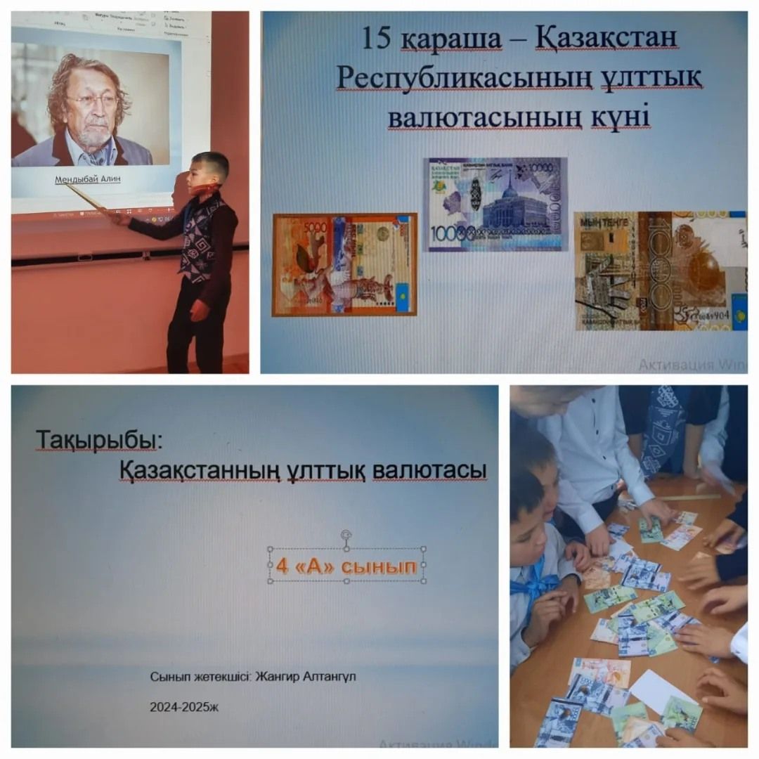4 "А" сыныбында 15 қараша -Ұлттық валюта күніне орай «Теңге – мемлекет келбеті»тақырыбында тәрбие сағаты
