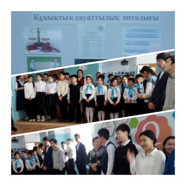 13.02.2023 Құқықтық сауаттылық апталығының ашылуына арналған «Құқықтық сауаттылығы-заман талабы» тақырыбында саптық жиын өтті. Мақсаты: Оқушылардың құқықтары мен міндеттері туралы, адам…