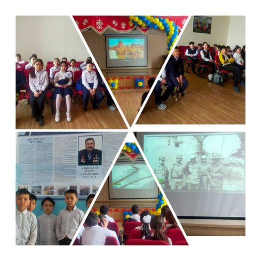 Кеңес әскерлерінің Ауғанстан жерінен шығарылғанына 34 жыл толуына орай және оқушыларды әскери-патриоттық сезімде тәрбиелеу мақсатында 15 ақпан күні оқушыларға ауған соғысы туралы фильм көрсетілді.Со…