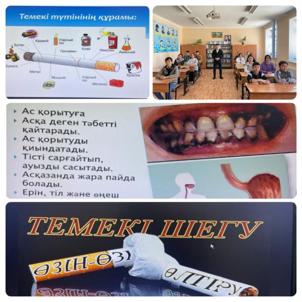 Қарашаның 29 күні Жабагина Л.Т мен Рымбек С пән мұғалімдері 7-9 сыныптар арасында «Темекі тарту» тақырыбында әңгіме жүргізді. Мақсаты: Оқушыларға денсаулық сүру қажеттілігінің бағалы бай…