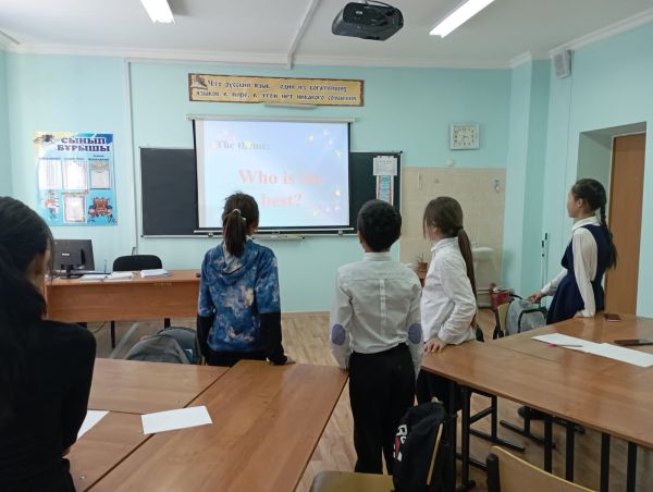 Ағылшын тілі апталығы аясында 6 сынып оқушылар арасында 'Who is the best" атты интелектуалдық ойын өтті. Пән мұғалімі Макишева Г.К