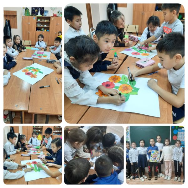 Эстетикалық сауаттылық апталығына орай бастауыш сынып арасында "Гүл шоқтары мен жапырақтар"