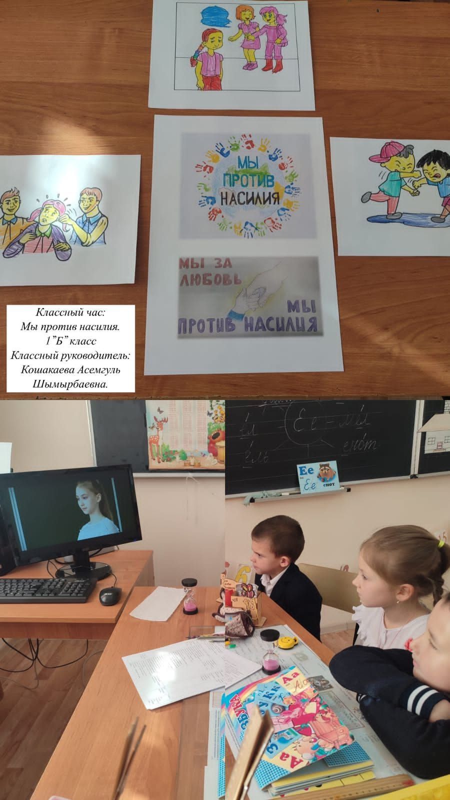 4 "А" сынып жетекшісі Жангир Алтынгүл оқушыларына ."Зорлық-зомбылықсыз балалық шақ "атты тәрбие сағатын өткізді.