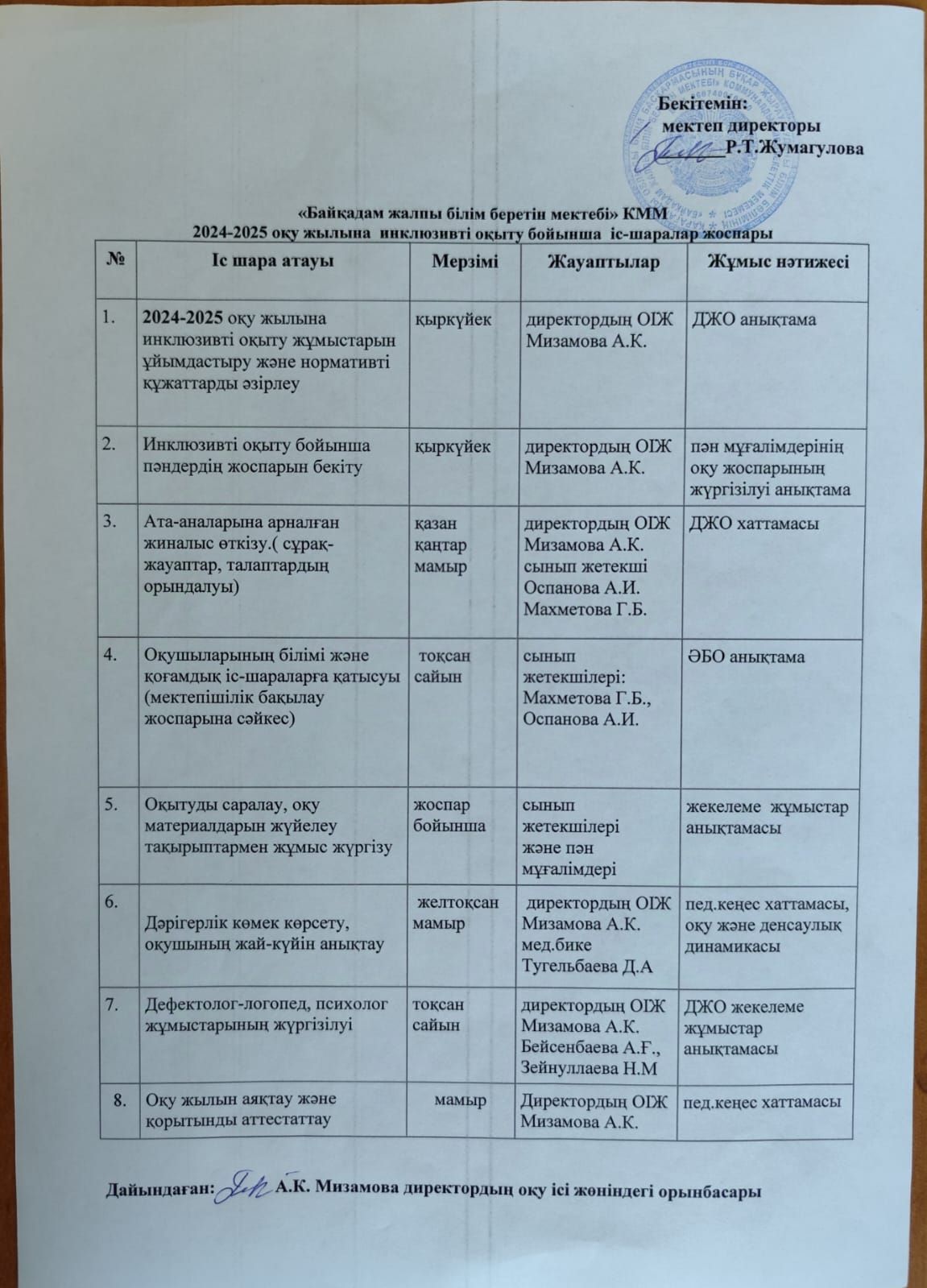 Инклюзивті оқытудың жоспары