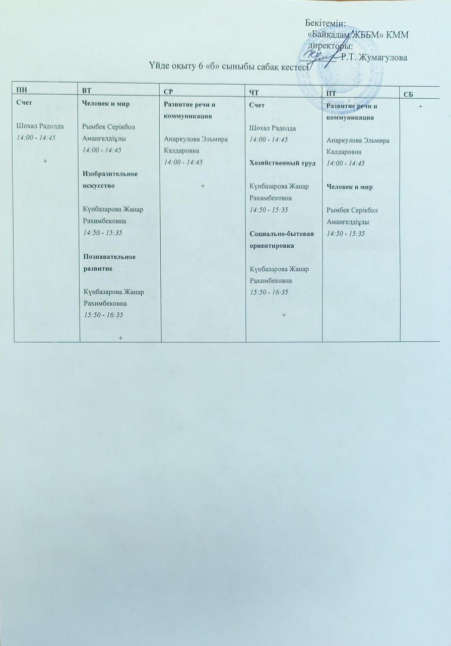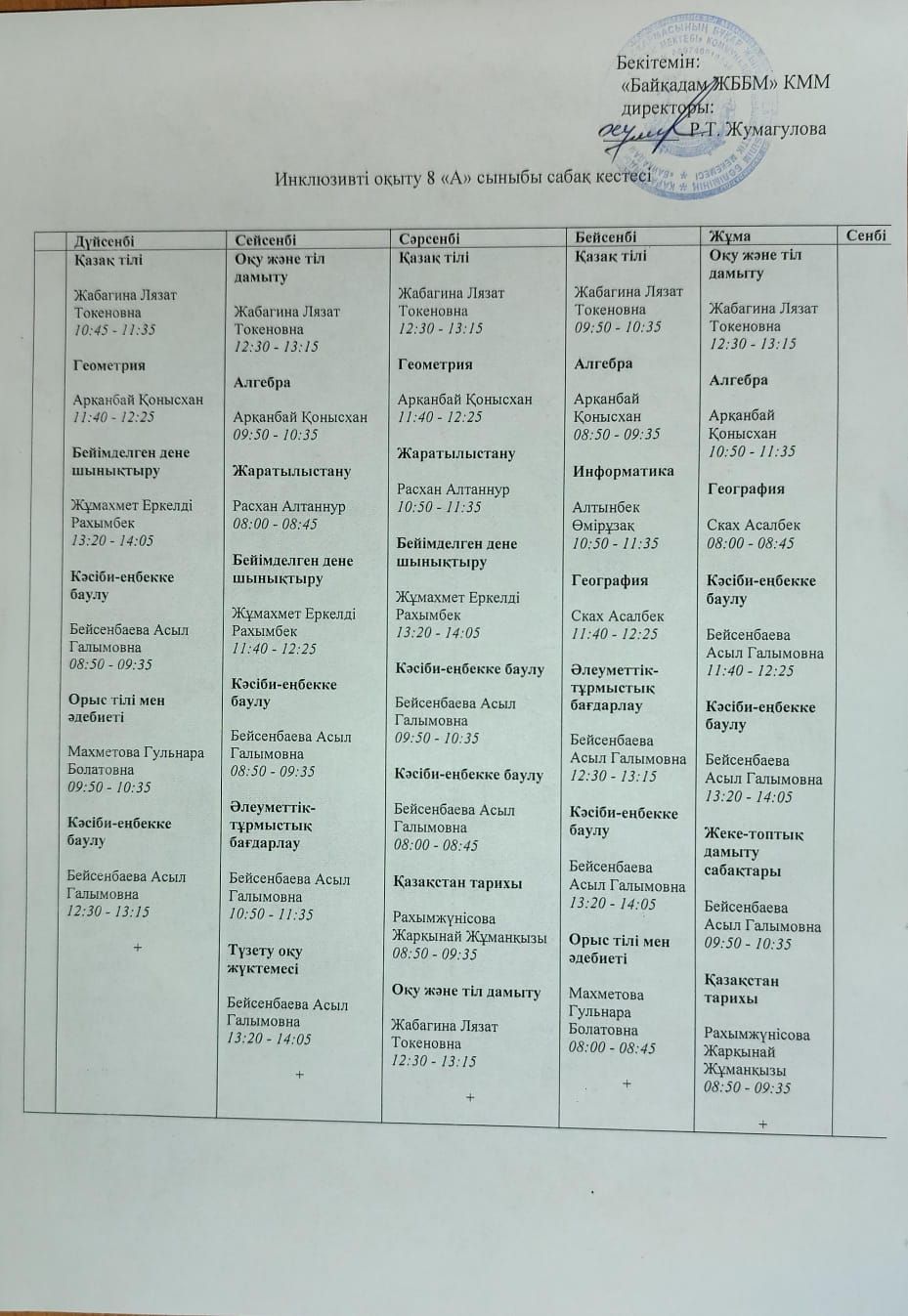 Инклюзивті оқыту сабақ кестесі