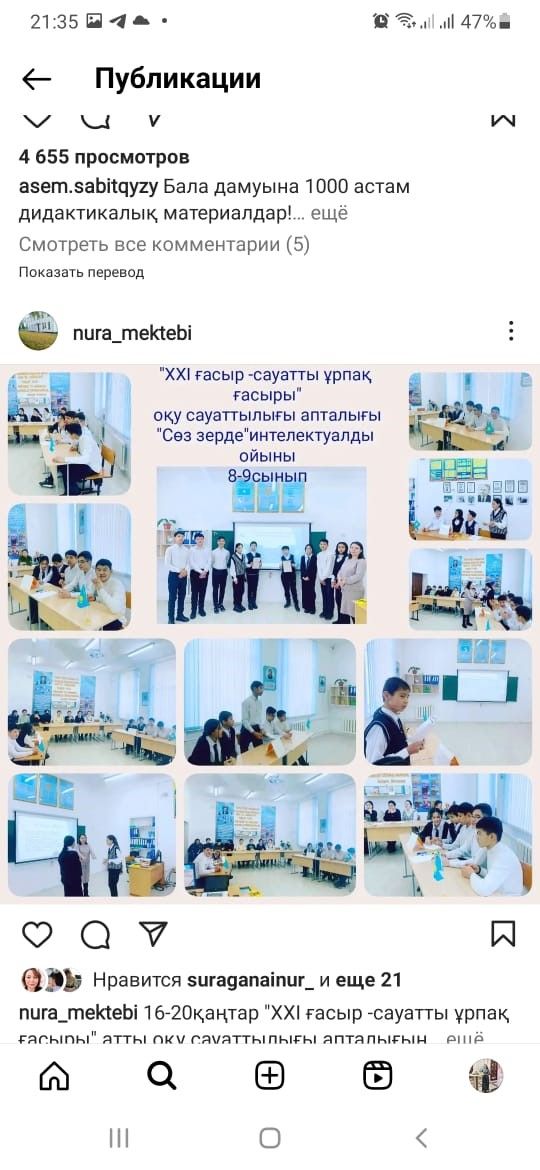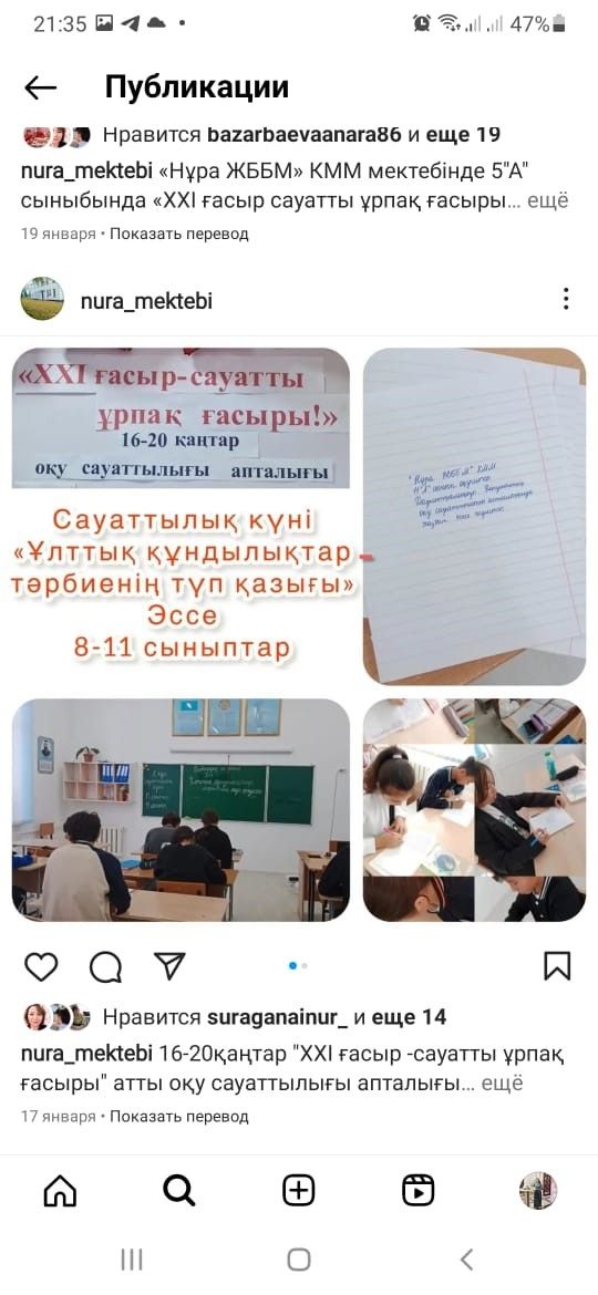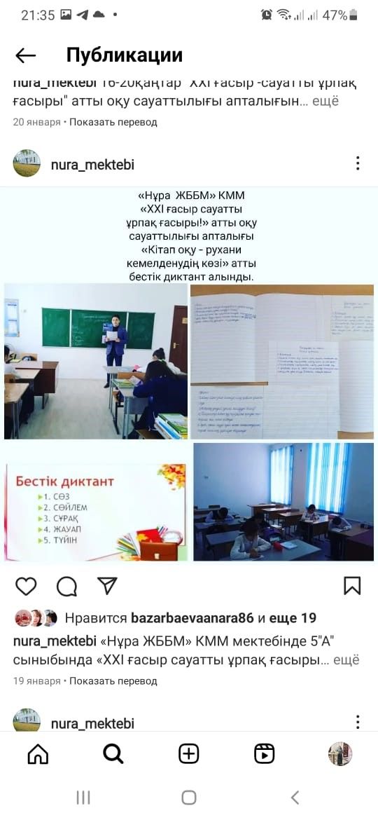 16-20 қаңтар аралығында «XXI ғасыр- сауатты ұрпақ ғасыры» атты оқу сауаттылығы апталығының өту барысы