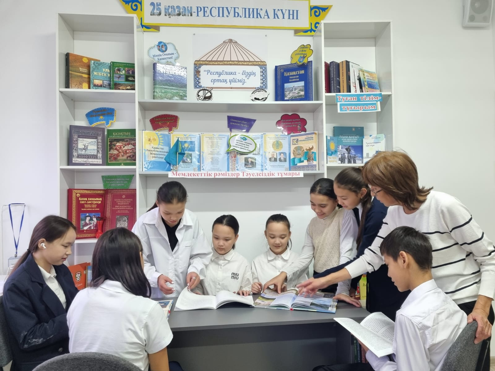 25 қазан Республика күніне орай "Мемлекеттік рәміздер Тәуелсіздік тұмары" тақырыбында, еліміздің рәміздерінің маңыздылығын жастарға түсіндіру мен ұлттық сана-сезімді арттыру мақсатында кіт…