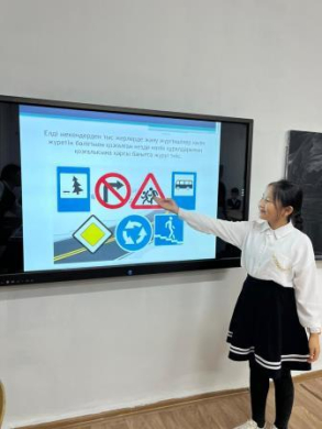 Оқушылардың жолда жүру ережесі, жол белгілерінің түрлері жайында білімдері толықтырылып,көшеде дұрыс жүріп- тұру, жол ережелері түсіндірілді.
