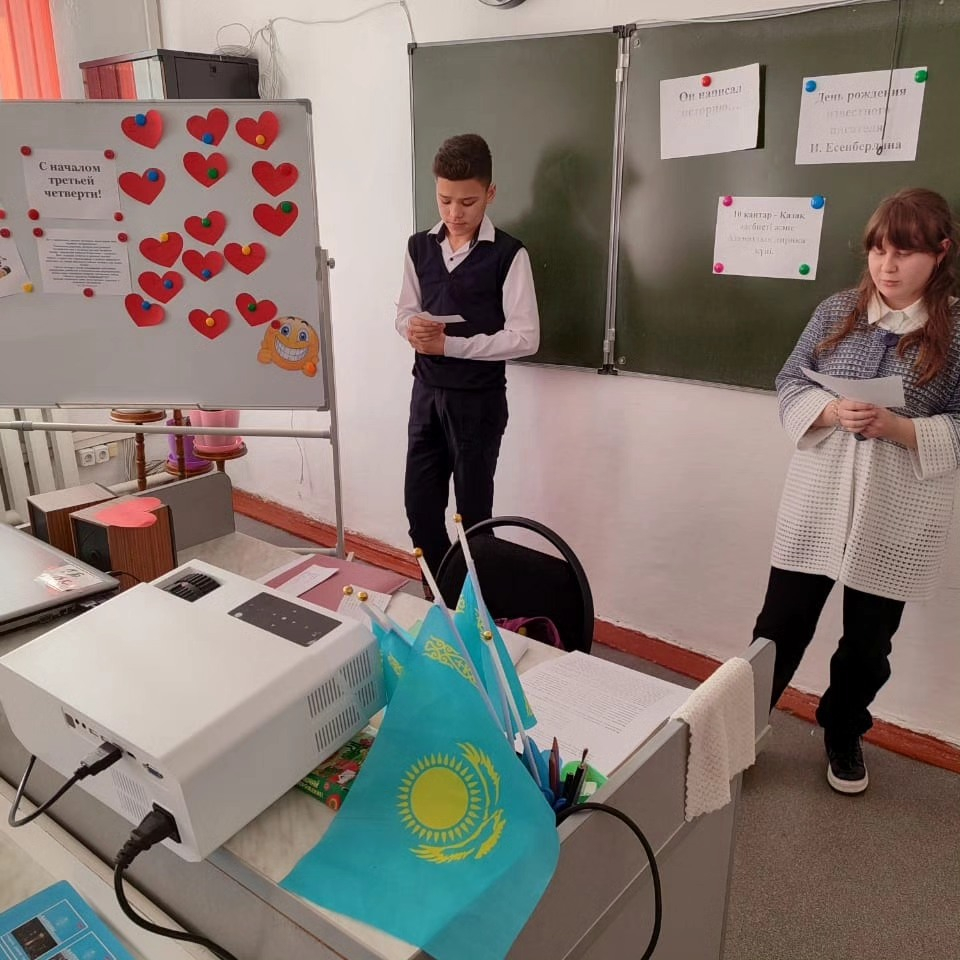 Во 2Б классе был проведён классный час, посвящённый дню рождения И. Есенберлина. Цель: знакомство с жизнью и творчеством казахского писателя И. Есенберлина, воспитание патриотизма, уважение к истори…