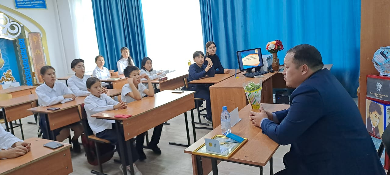 Бүгін Мағжан Жұмабаев атындағы жалпы білім беретін мектебінде 10 сынып оқушыларымен бірге Нұра жастар ресурстық орталығының бас маманы Альшимбаева Алия Ансариевна