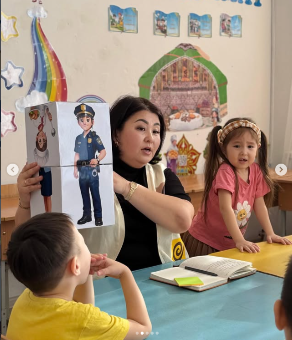 Мамандықтардың қоғамдағы маңызы түсіндіріліп, балалар дәрігер, аспаз, ұстаз, өрт сөндіруші сияқты мамандықтар жайлы әңгімеледі.