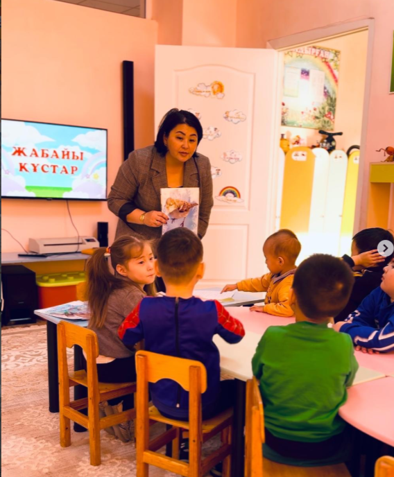 М.Жұмабаев атындағы ЖББМГ жанындағы «Балдырған» шағын орталығының «Балдырған» тобы тәрбиеленушілеріне «Тілге бойлау» жобасы аясында «Құстар – біздің д…