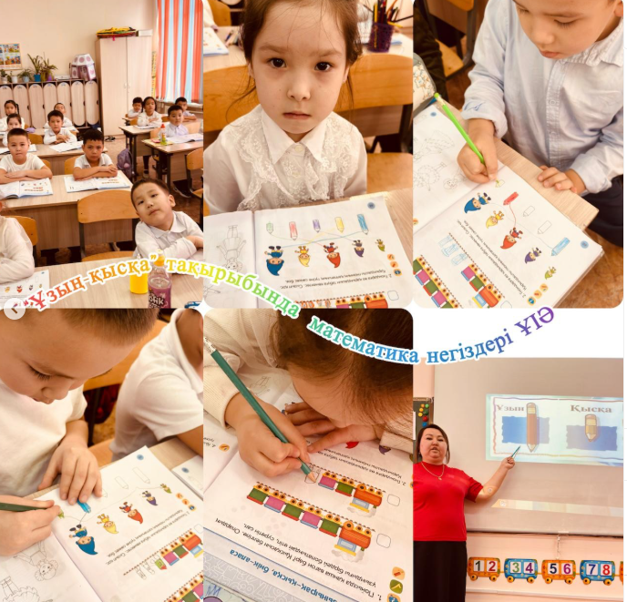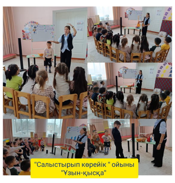 Математика апталығының үшінші күні «Үлкен – кіші. Ұзын – қысқа» тақырыбында ұйымдастырылды. Мақсаты – заттарды көлемі мен ұзындығына қарай салыстыру, логикалық ойлау қабілеттерін дамыту.