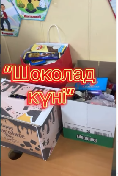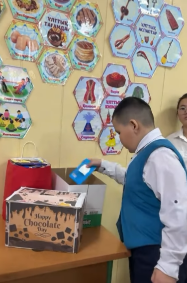 Мектебімізде оқушыларға жағымды көңіл күй сыйлау мақсатында мектеп парламентінің ұйымдастыруымен «Шоколад күні» ұйымдастырылды.