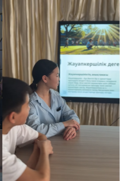 «Адал азамат» біртұтас тәрбие бағдарламасы және «Заң және тәртіп» айлығы аясында бейнематериал көрсетіп, әңгімелесу жұмыстары