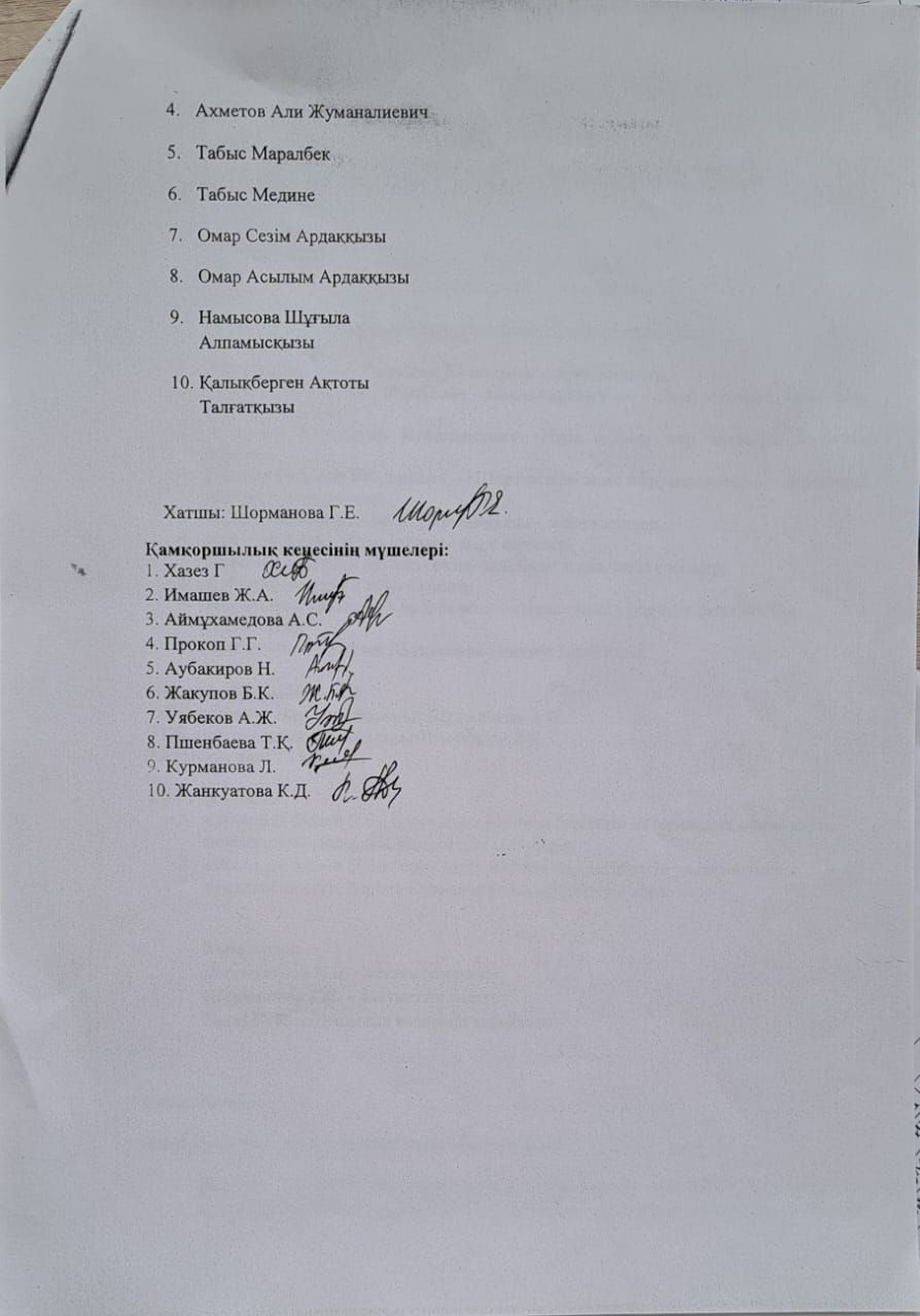 Қамқорлық кеңесінің хаттамасы