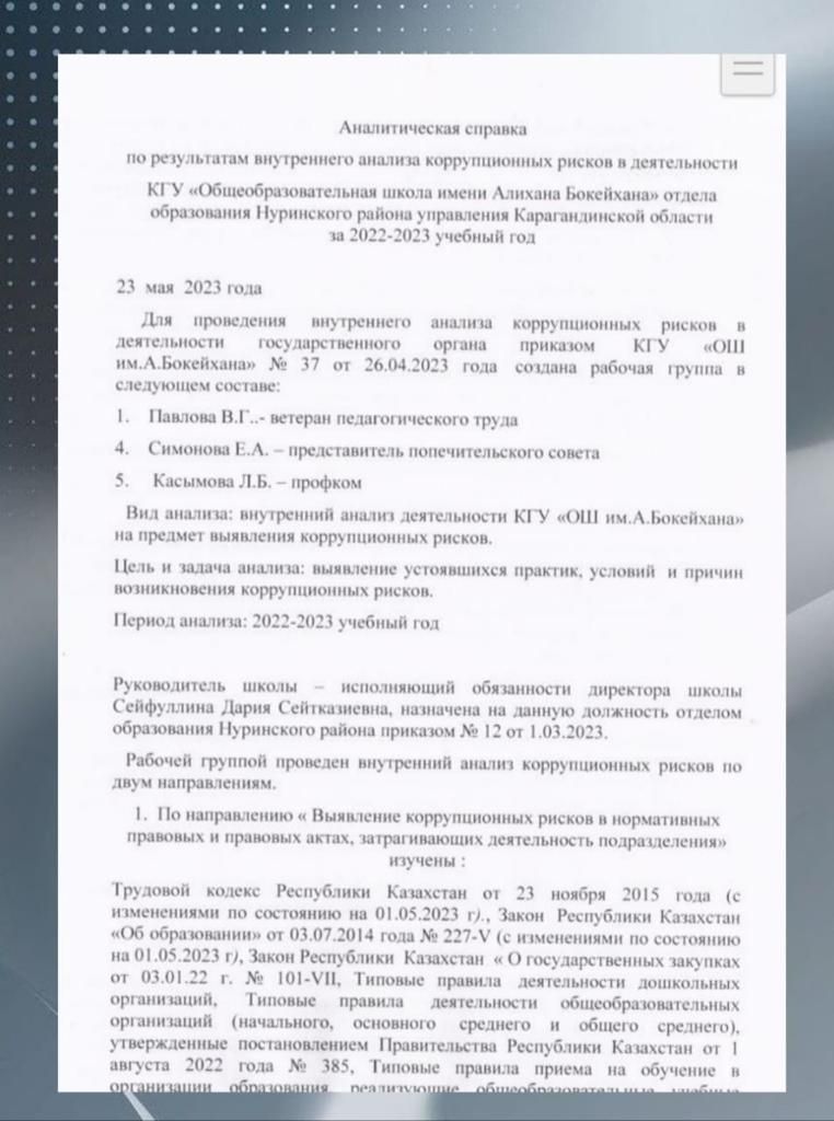 В рамках формирования нетерпимого отношения к коррупции в ОШ им.А.Бокейхана проведен ,,Час Добропорядочности,,