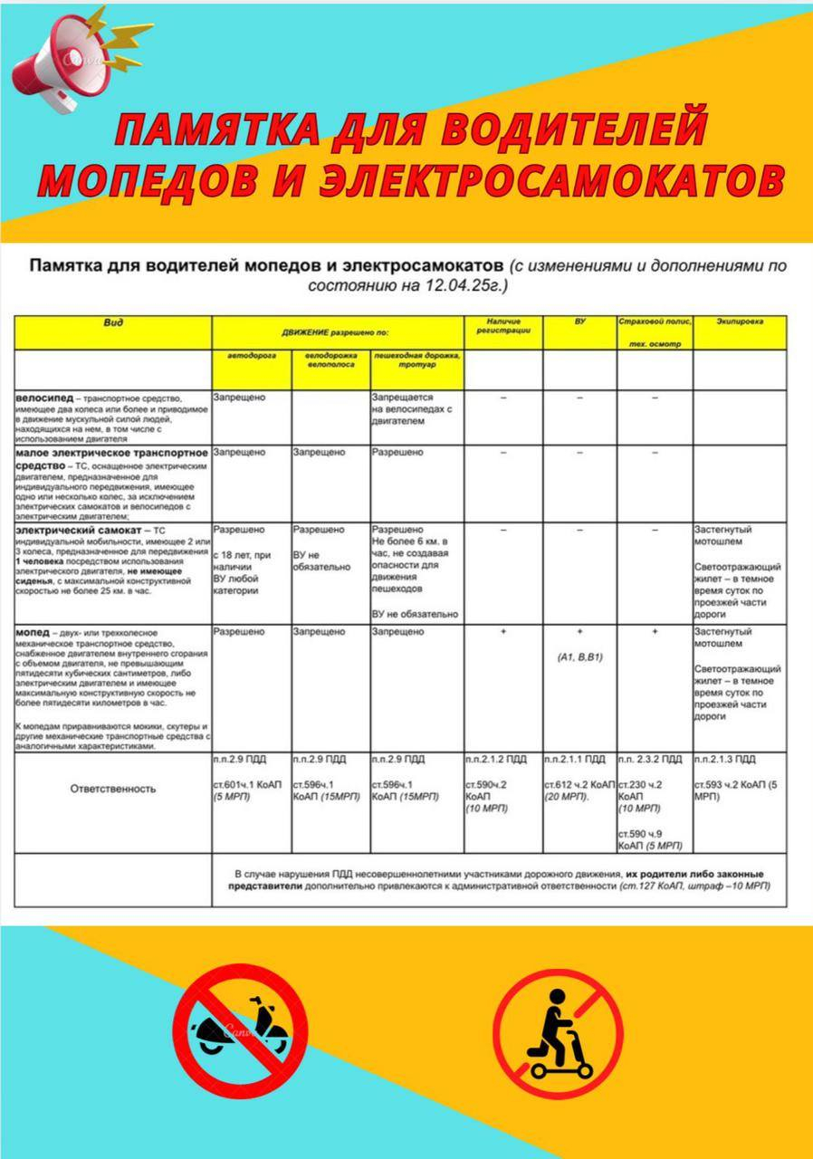 Памятка для водителей мопедов и электросамокатов