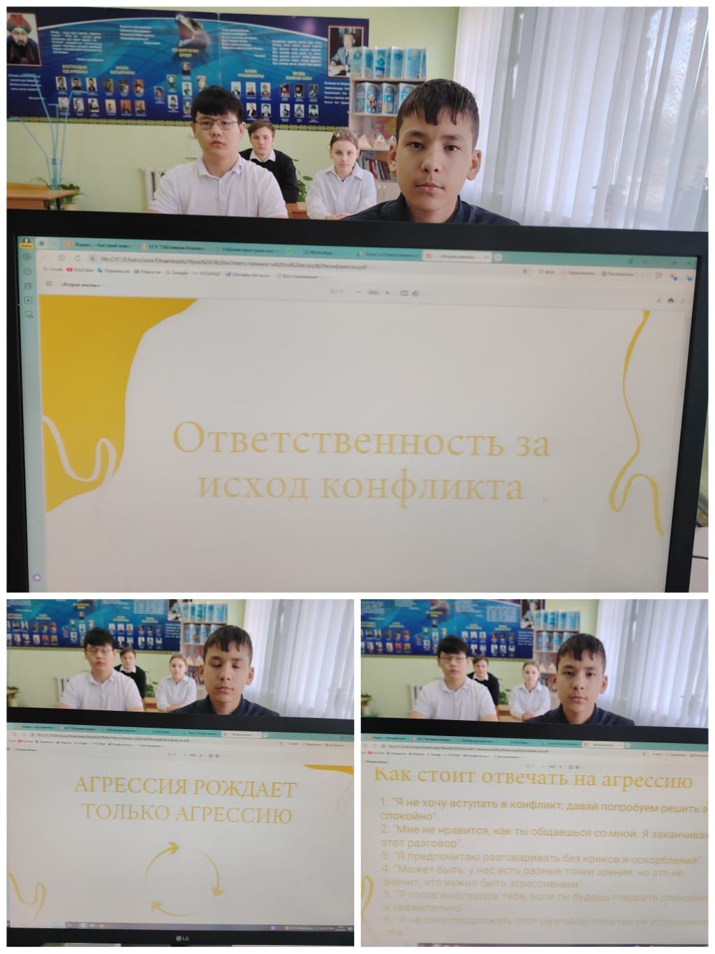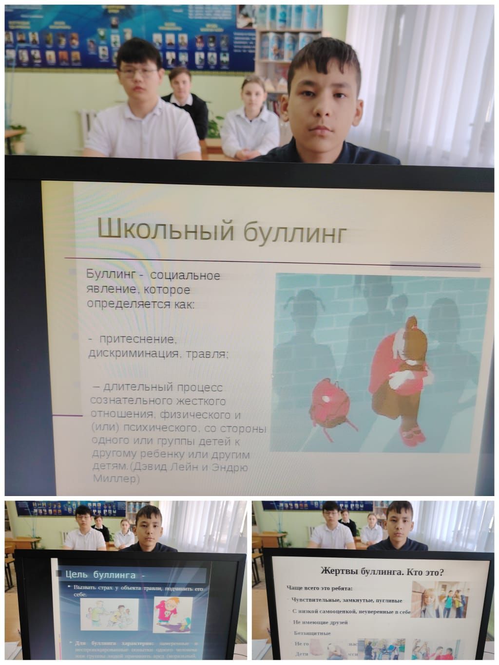 ОШ имени Алихана Бокейхана в 9 классе прошел классный час на тему "Школьный буллинг". Цель: