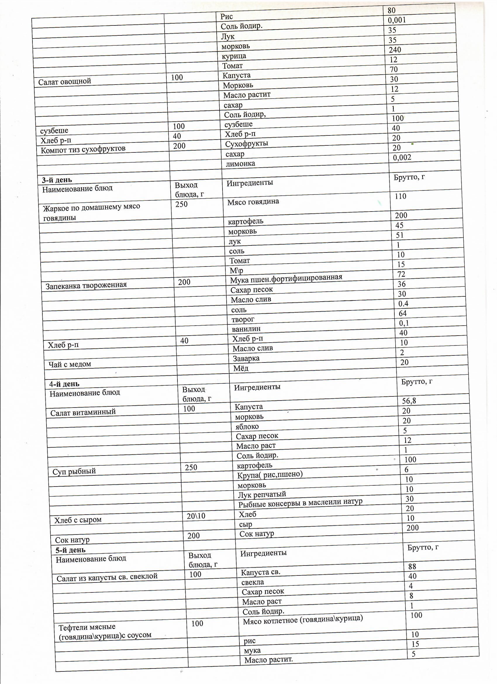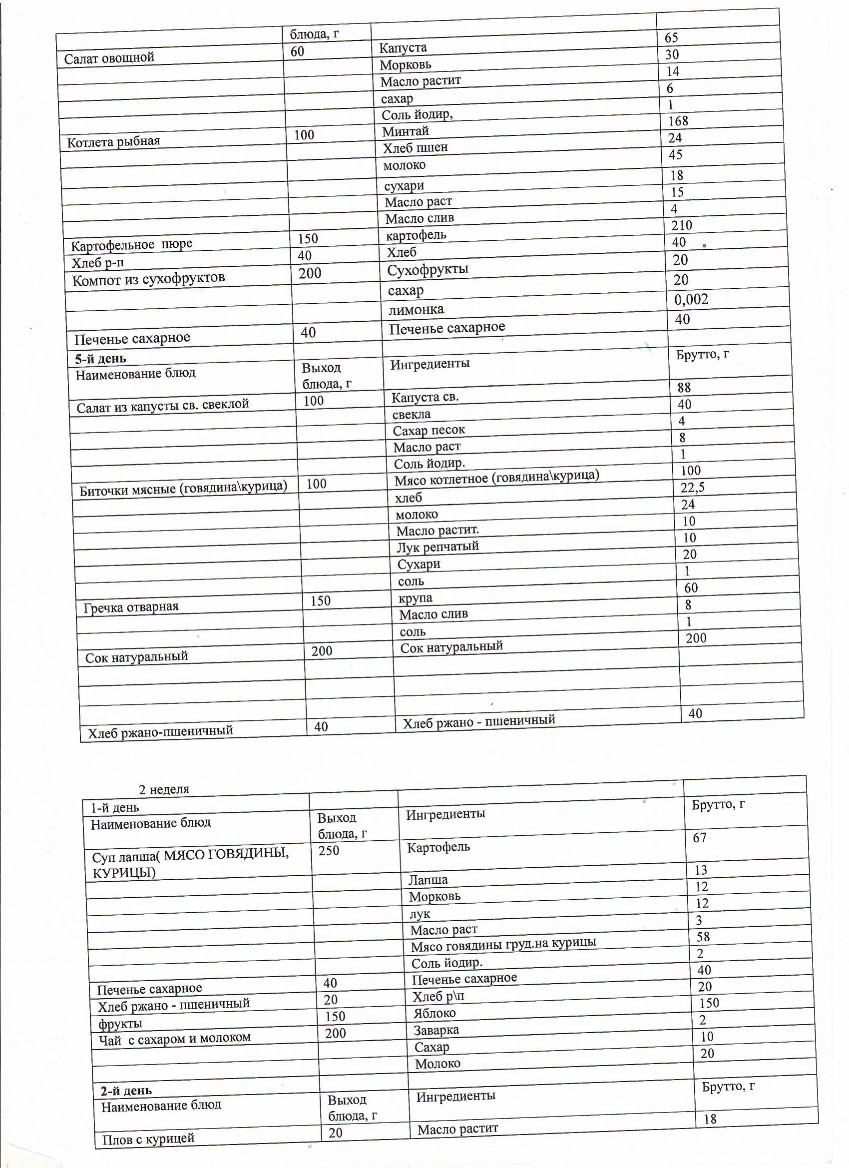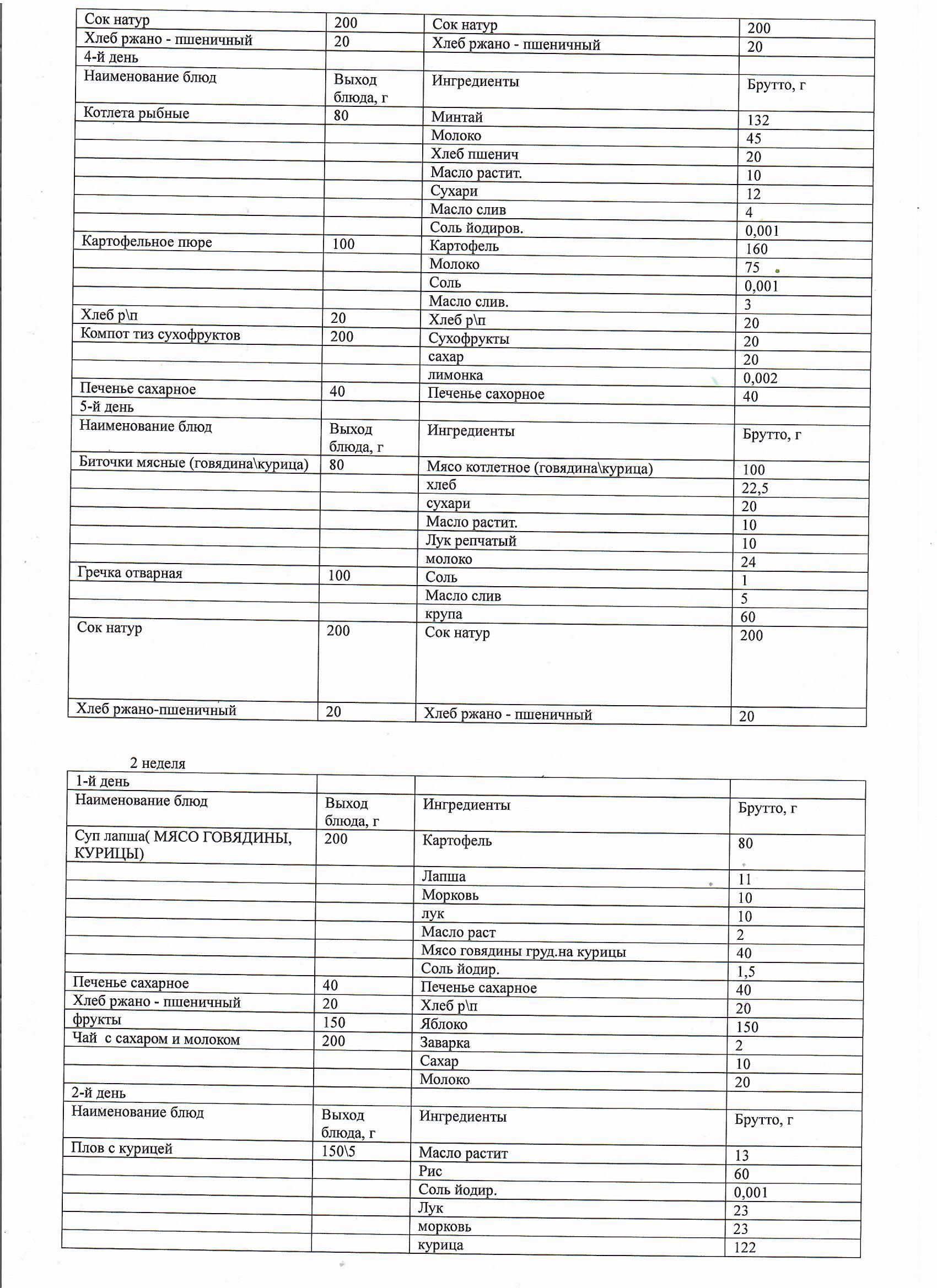 Перспективное двухнедельное меню блюд для организации питания учащихся начальных классов а также 5-11 классов в КГУ ОШ им Алихана Бокейхана