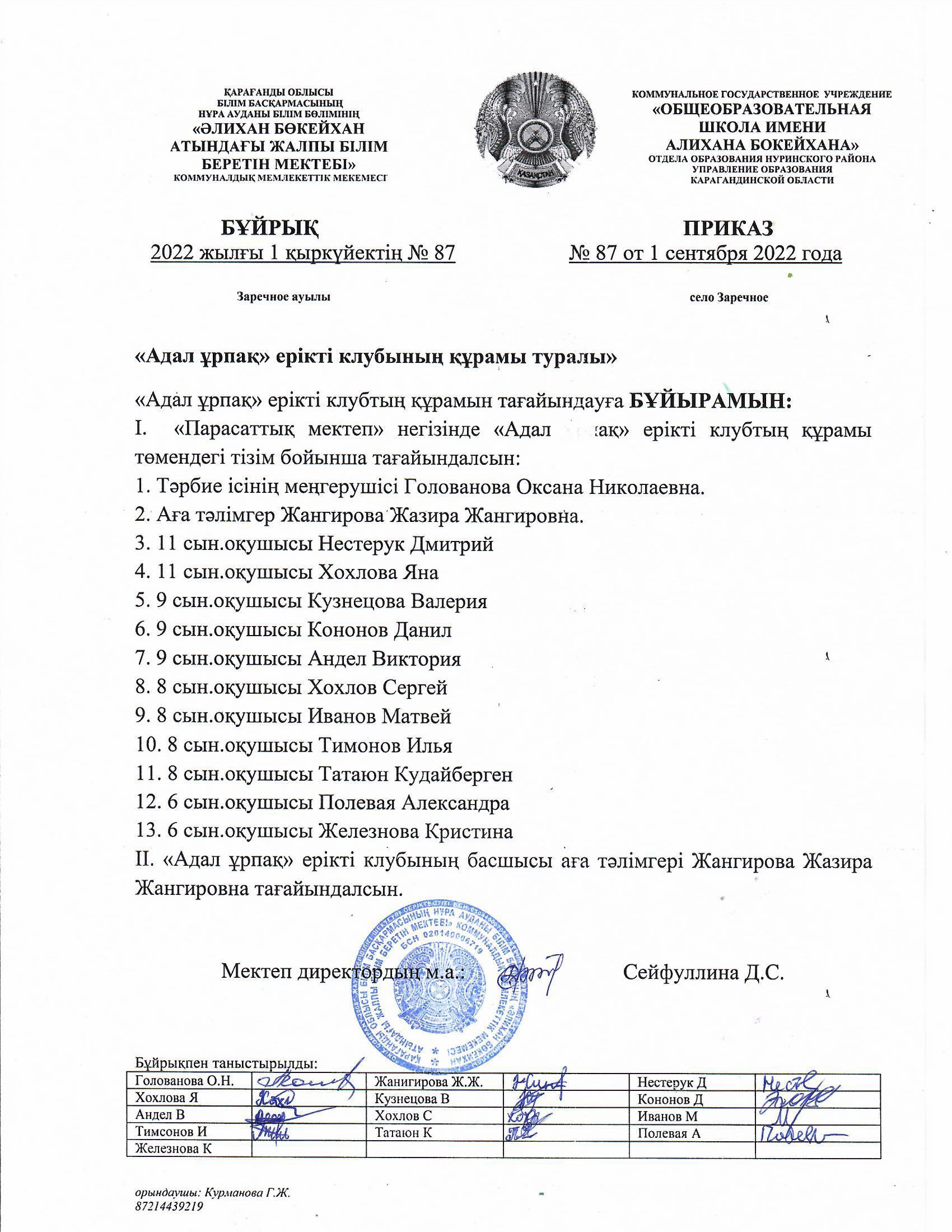 Представители добравольного школного клуба "Адал ұрпақ" в КГУ ОШ им Алихана Бокейхана
