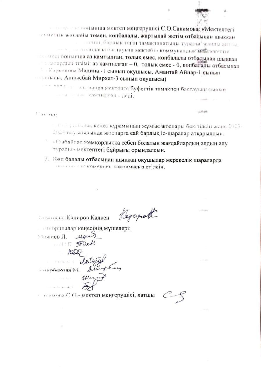 Қамқоршылық кеңес мүшелерінің 2-тоқсандағы отырысының хаттамасы