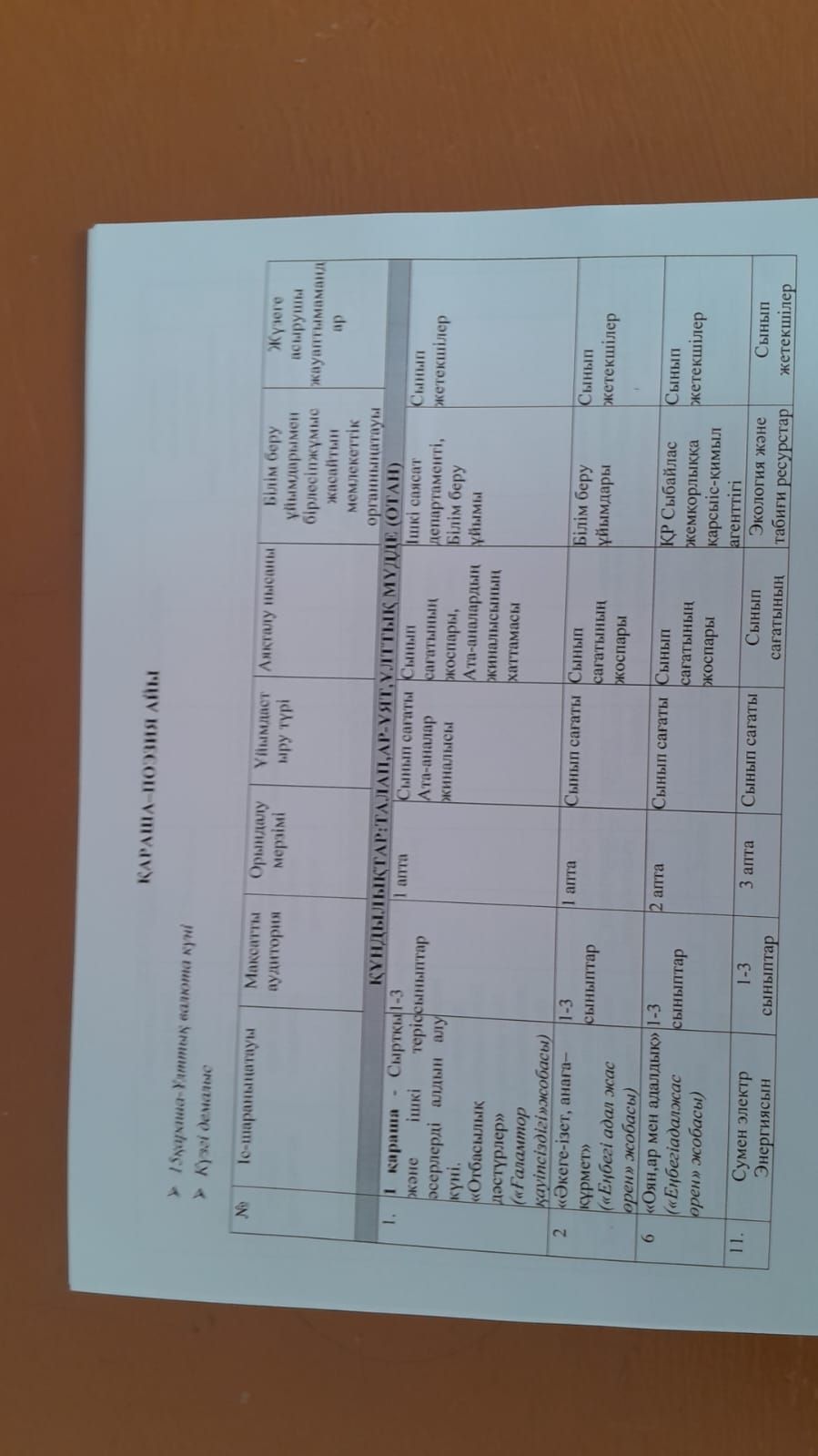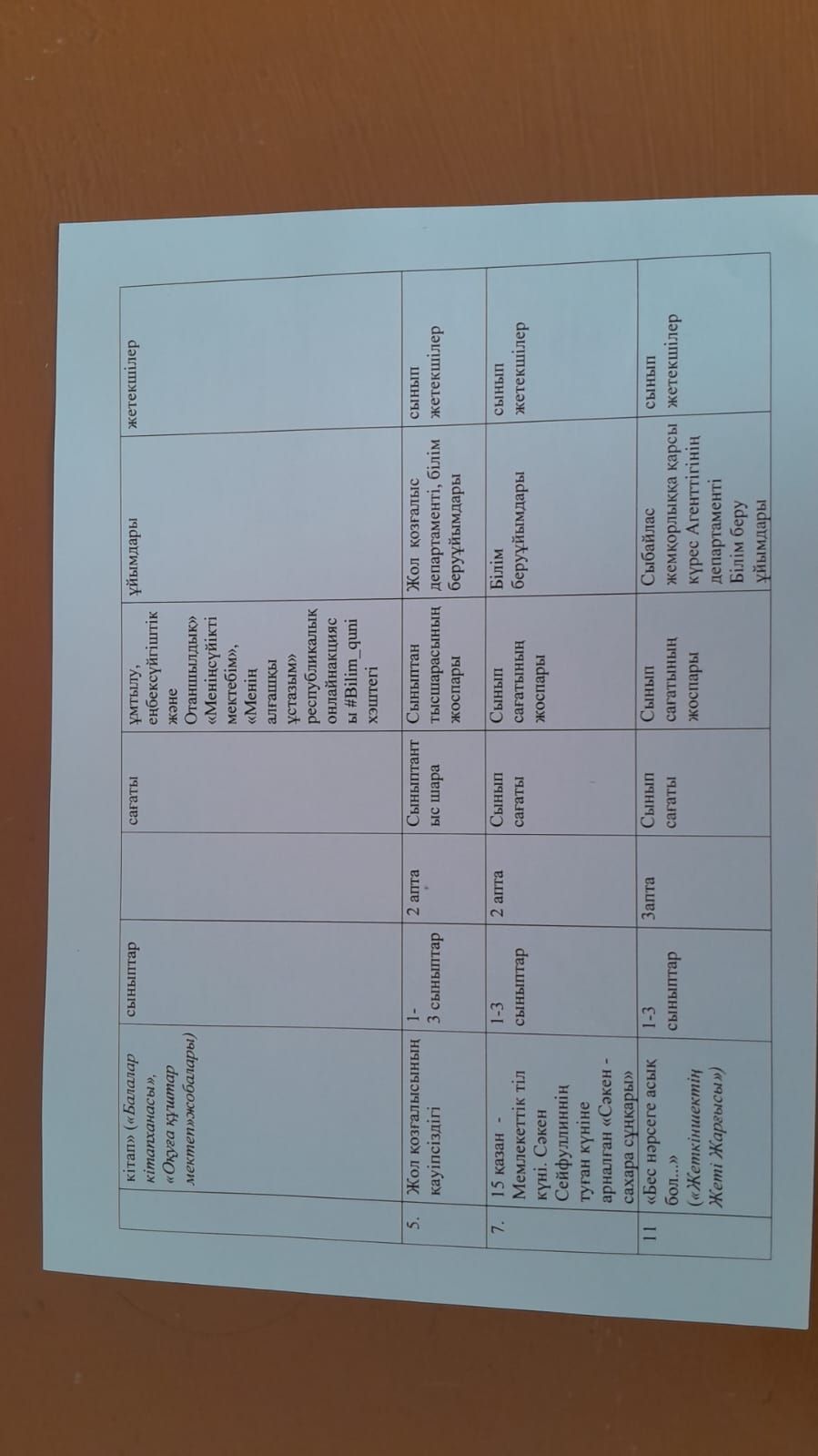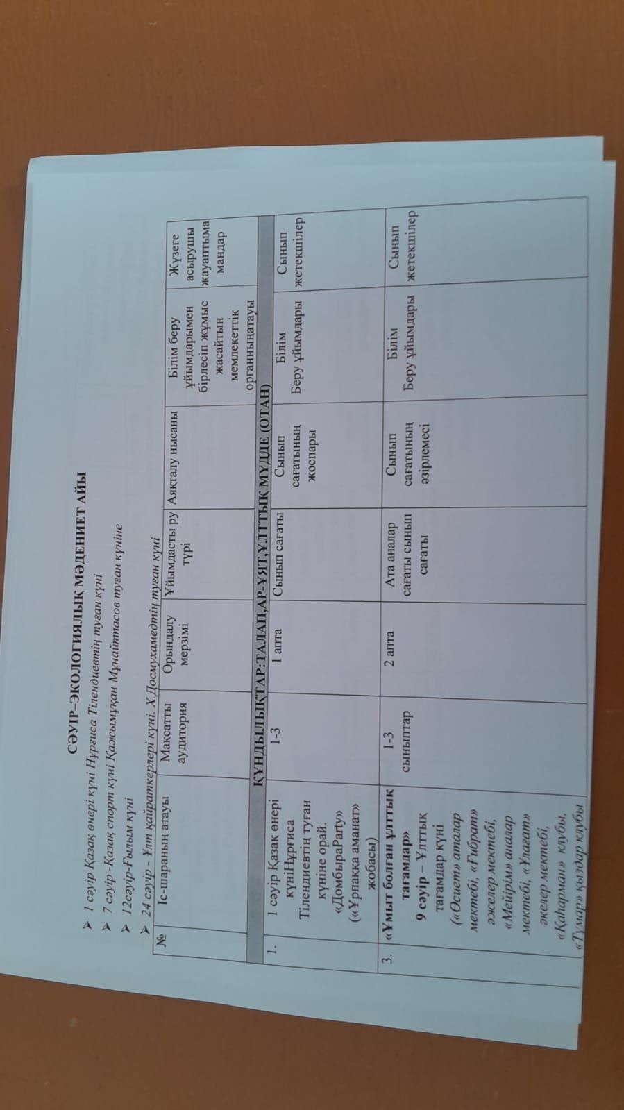 "Біртұтас тәрбие бағдарламасын" іске асыру бойынша 2023-2024 оқу жылына арналған кешенді жоспары