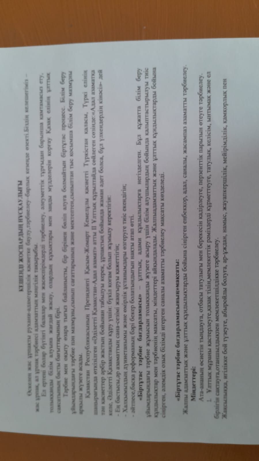 "Біртұтас тәрбие бағдарламасы" - ұлттық, адами құндылықтарға негізделген. Бұл құжатта білім беру ұйымдарындағы тәрбие жұмысын толыққанды жүзеге асыру үшін білім алушылардың бойында қалыпта…