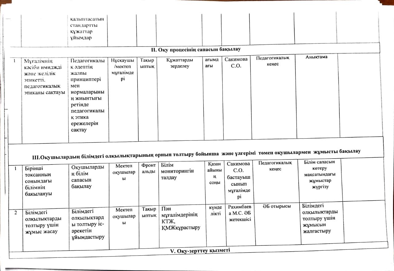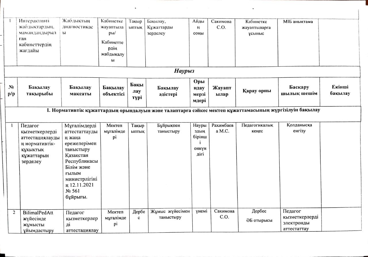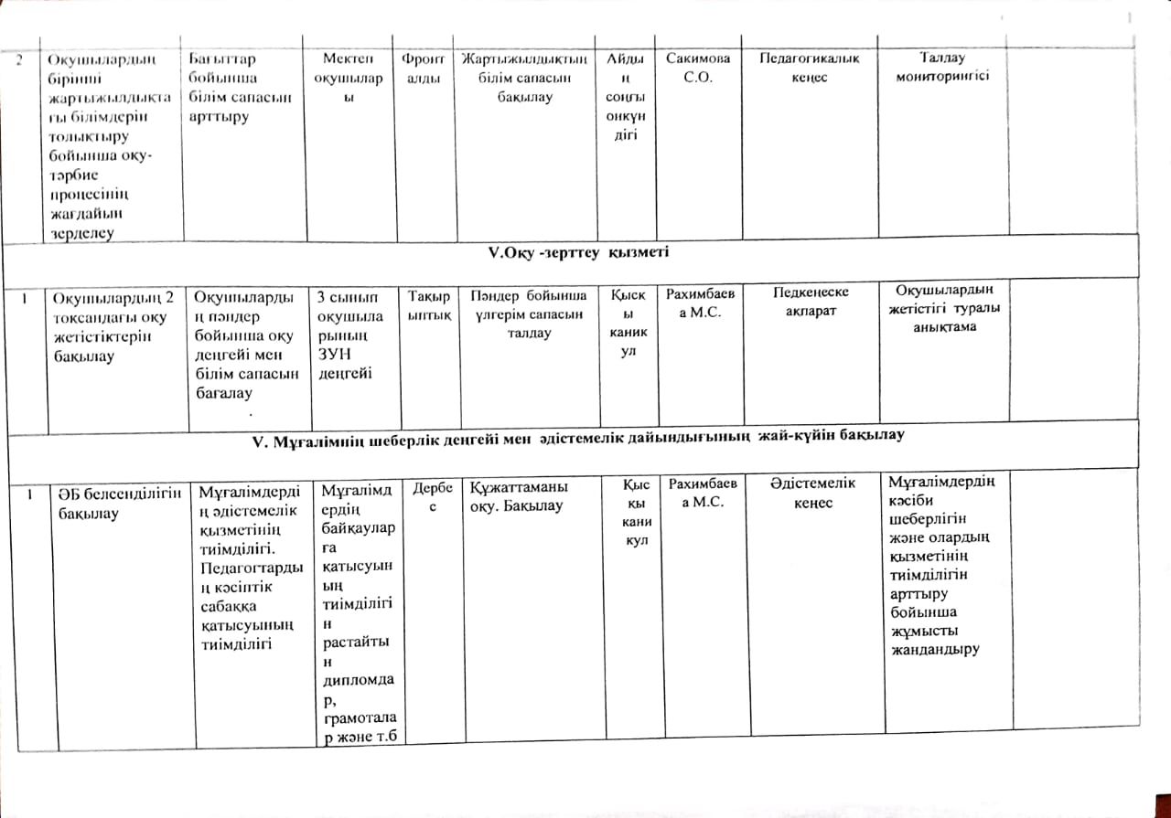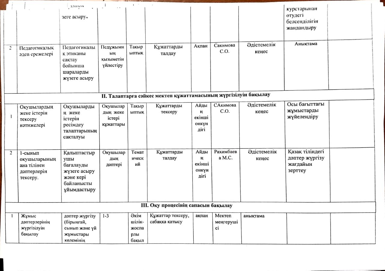 2023-2024 оқу жылына арналған Мектепшілік бақылау жоспары