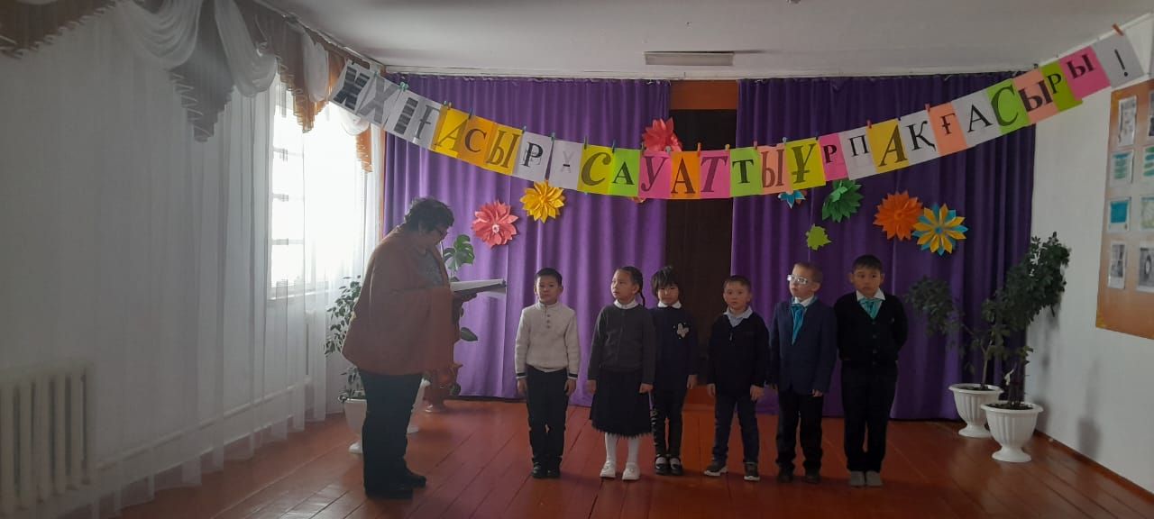 Оқушылардың әліппеден алған білімдерін ортаға салу. Оқушыларды ана тілі оқулығымен таныстыру және өзін-өзі басқаруға үйрету мақсатында "Қош бол, Әліппе" атты ертеңгілігі өтті.