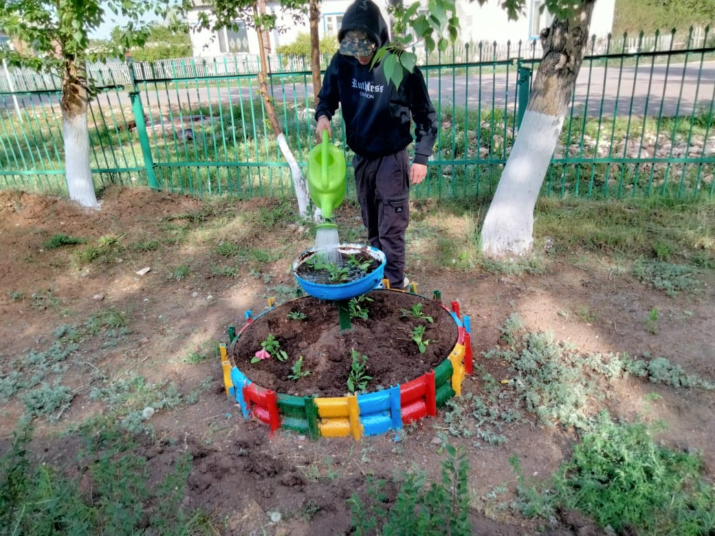 Мектеп ауласына гүл отырғызу.