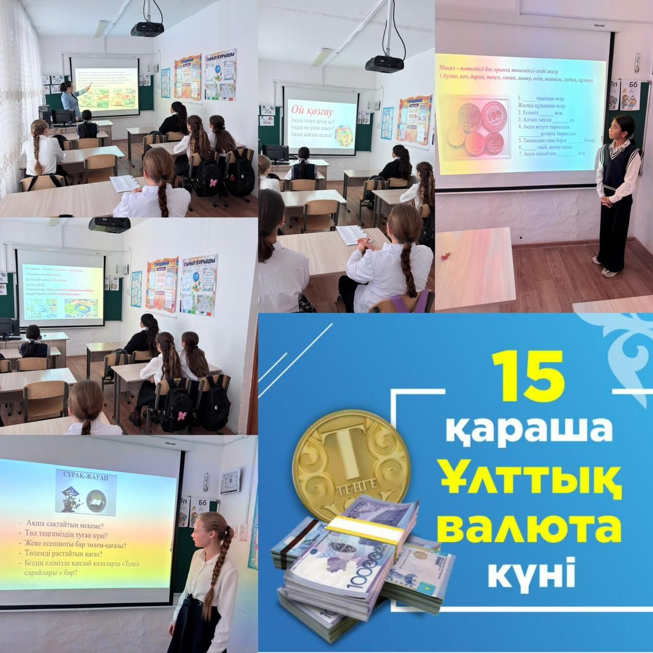 11 ноября в ОШ имени А.Асылбекова в 9-11классах прошли классные часы,посвященные дню национальной валюты. Целью классного часа было помочь учащимся определить роль и место национальной валюты -тенге…