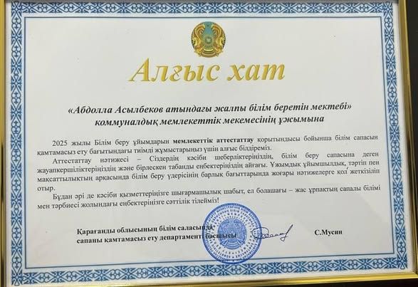 А. Асылбеков атындағы жалпы білім беретін мектебі 2025 жылы білім беру ұйымдарын мемлекеттік аттестаттаудан сәтті өтті. Аттестаттау барысында оқу орнының материалдық-техникалық базасы, оқу-тәрбие үр…