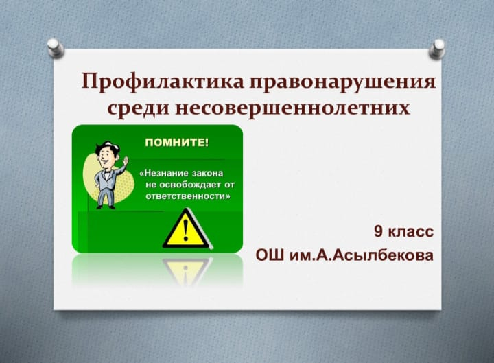 8 января, в школе А.Асылбекова, в 9 русском классе прошел классный час на тему "Профилактика правонарушения среди несовершеннолетних".