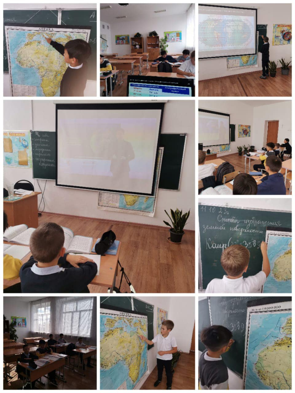 В ОШ имени Абдоллы Асылбекова прошёл урок естествознания в 6 классе. Тема урока:Как найти географический объект по коодинатам. В начале урока дети посмотрели отрывок из фильма "Дети капитана Гр…