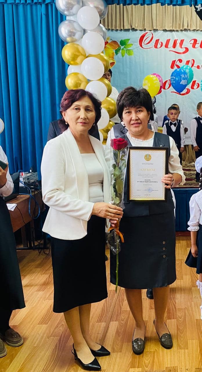Мектебіміздің математика пәнінің ұстазы Абаева Кулшат Мырзабековна білім саласын дамыту жолында қол жеткен табыстары және оған қосқан үлесі үшін