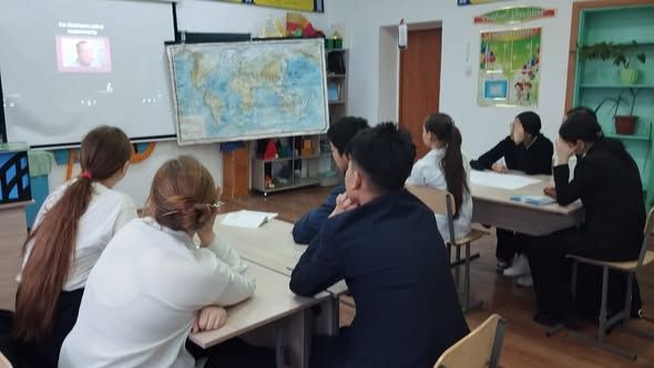 8-11сынып оқушыларына "Абай Құнанбайұлының туғанына 180 жыл" атты деректі фильм көрсетілді және 5-8…