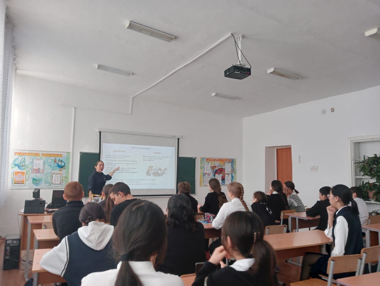 Мектебіміздің психологы 5-11 сыныптар арасында «Кибербуллинг дегеніміз не? Әңгімелесейік?, Let’s talk?, Поговорим?» тақырыбында ақпарат беріп, видеороликтер мен презентация көрсеті…