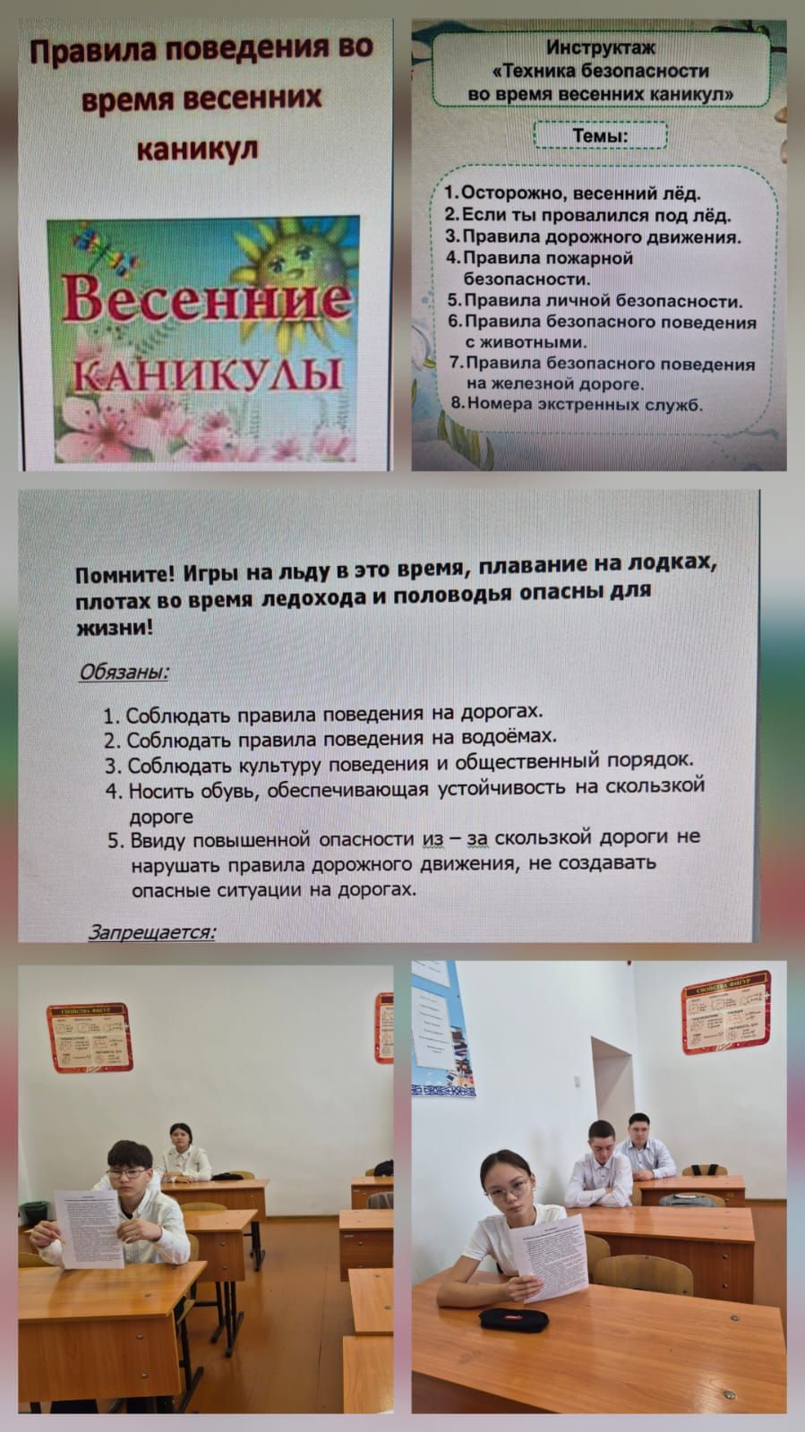 16.03.2026 года в ОШ имени К.Мынбаева в 9"Б" классе, классный руководитель Есенова Г.К, провела инструктаж по технике безопасностей детей во время весенних каникул.Цель: во время весенних…
