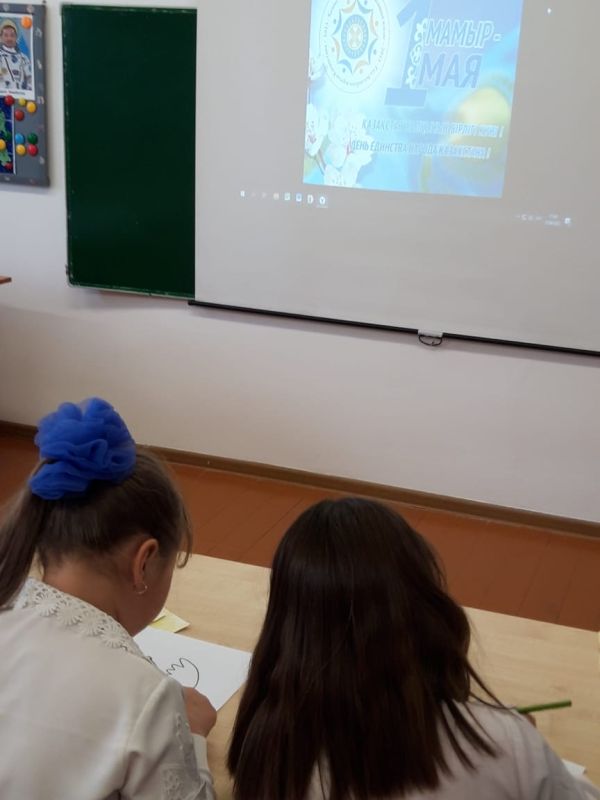 В 7 русском классе был проведен классный час "1Мая - День единства и согласия народов РК» , целью которого было сформировать между детьми дружеские взаимоотношения,