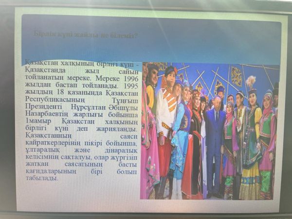 1 мамыр Қазақстан халқының бірлігі күніне орай «Бейбітшілік – ел тілегі» тақырыбында сынып сағаты өткізілді.